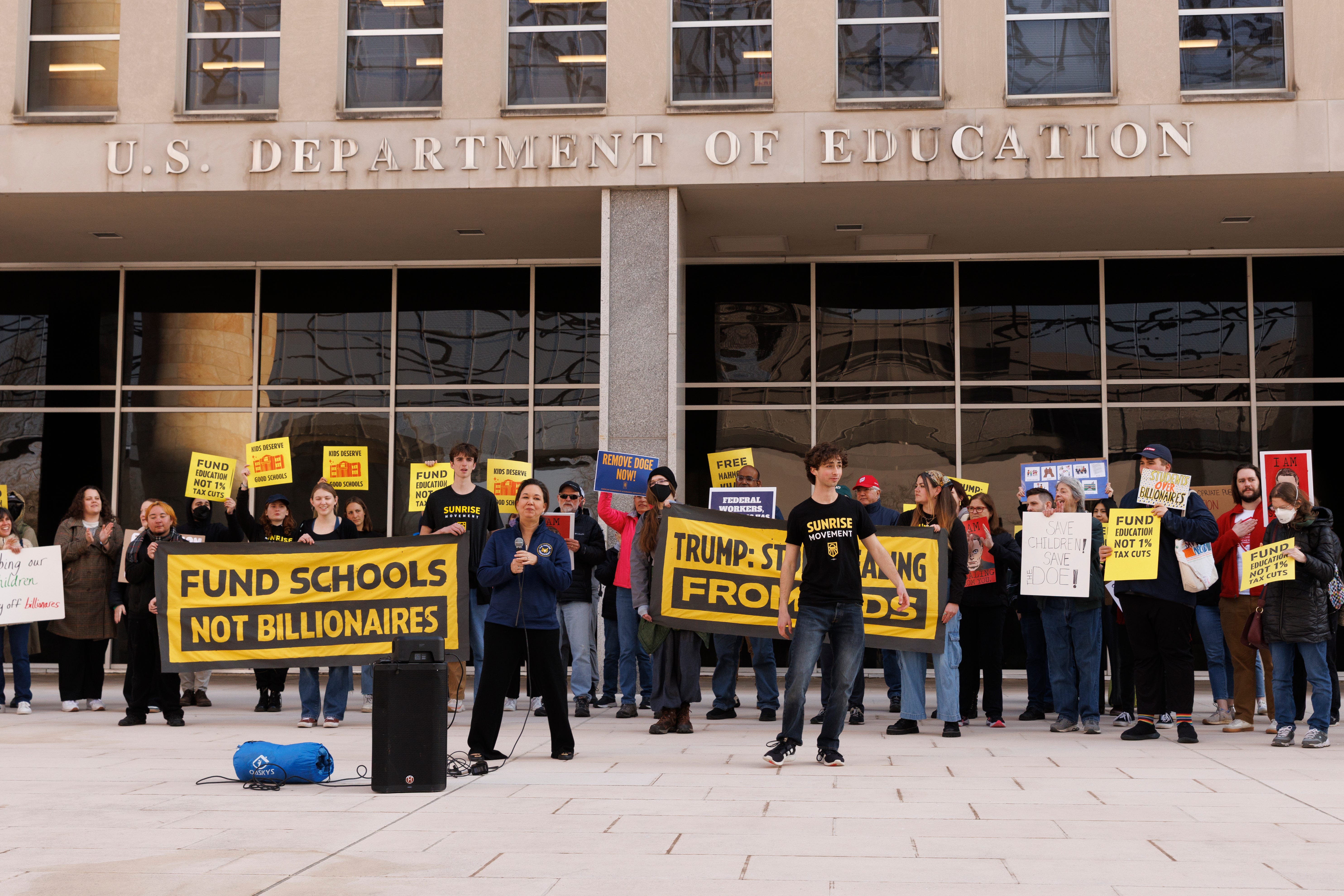 As the Trump administration led by DOGE has moved to gut the Department of Education, teachers unions have led protests and lawsuits challenging massive layoffs, deep budget cuts, and alleged breaches of student data privacy.